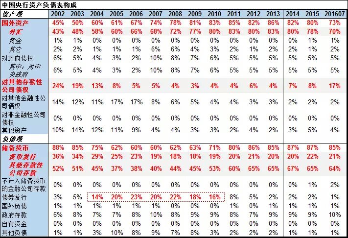 从央行资产负债结构的变化可看出,在加入WTO后,从2002年至2013年,伴随着大量的贸易顺差和资本流入,外汇占款激增,在此阶段央行的基础货币主要依靠外汇占款被动投放,对应央行资产负债表中资产“国外资产-外汇”一项占比逐年增加。在此基础上: