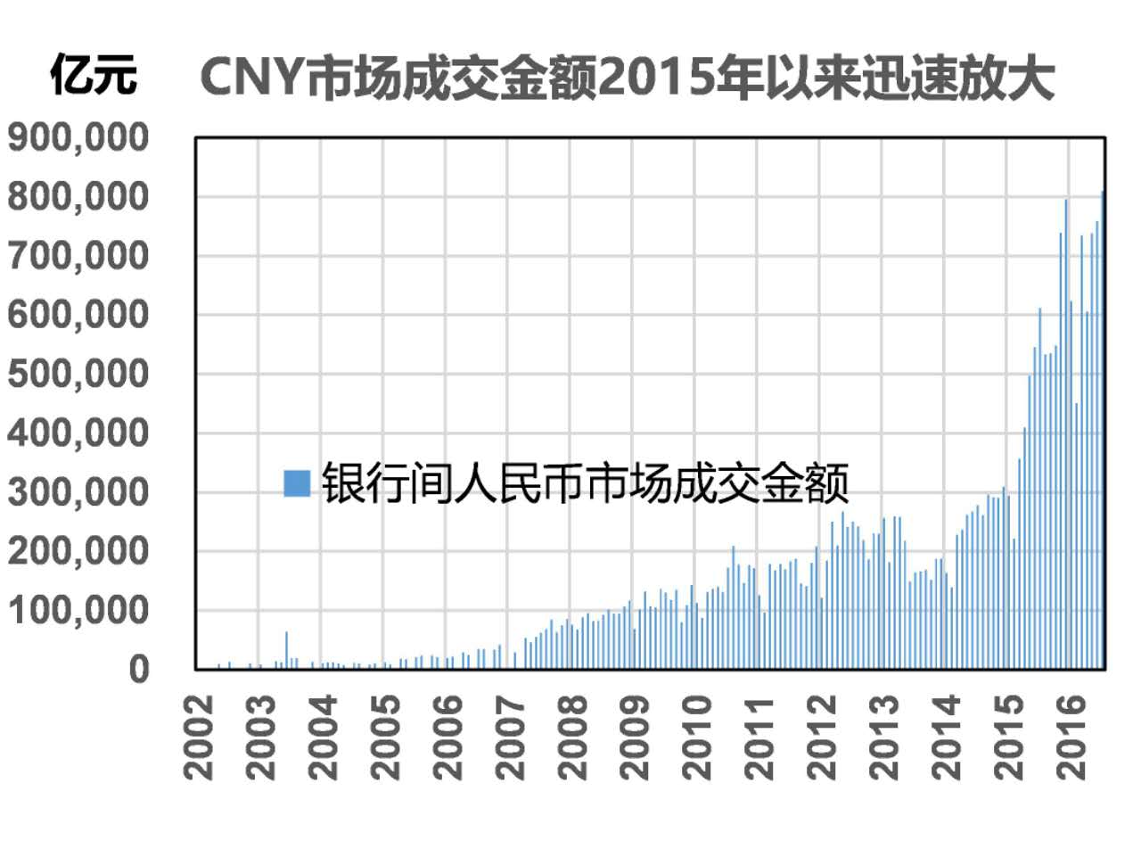 由于新规则既考虑了前一交易日的美元兑人民币收盘汇率,也考虑了为保持一篮子货币汇率稳定所需要的美元兑人民币中间价调整幅度。在此之后,人民币兑美元的即期汇率和中间价几乎一致,进入贬值通道,成交量也迅速放大,如下图所示。在人民币急速贬值的过程中,央行采用了大量公开市场操作的方式进行调控(大致消耗了5000亿美元外汇储备),同时也采用了一系列行政手段控制资本外流。